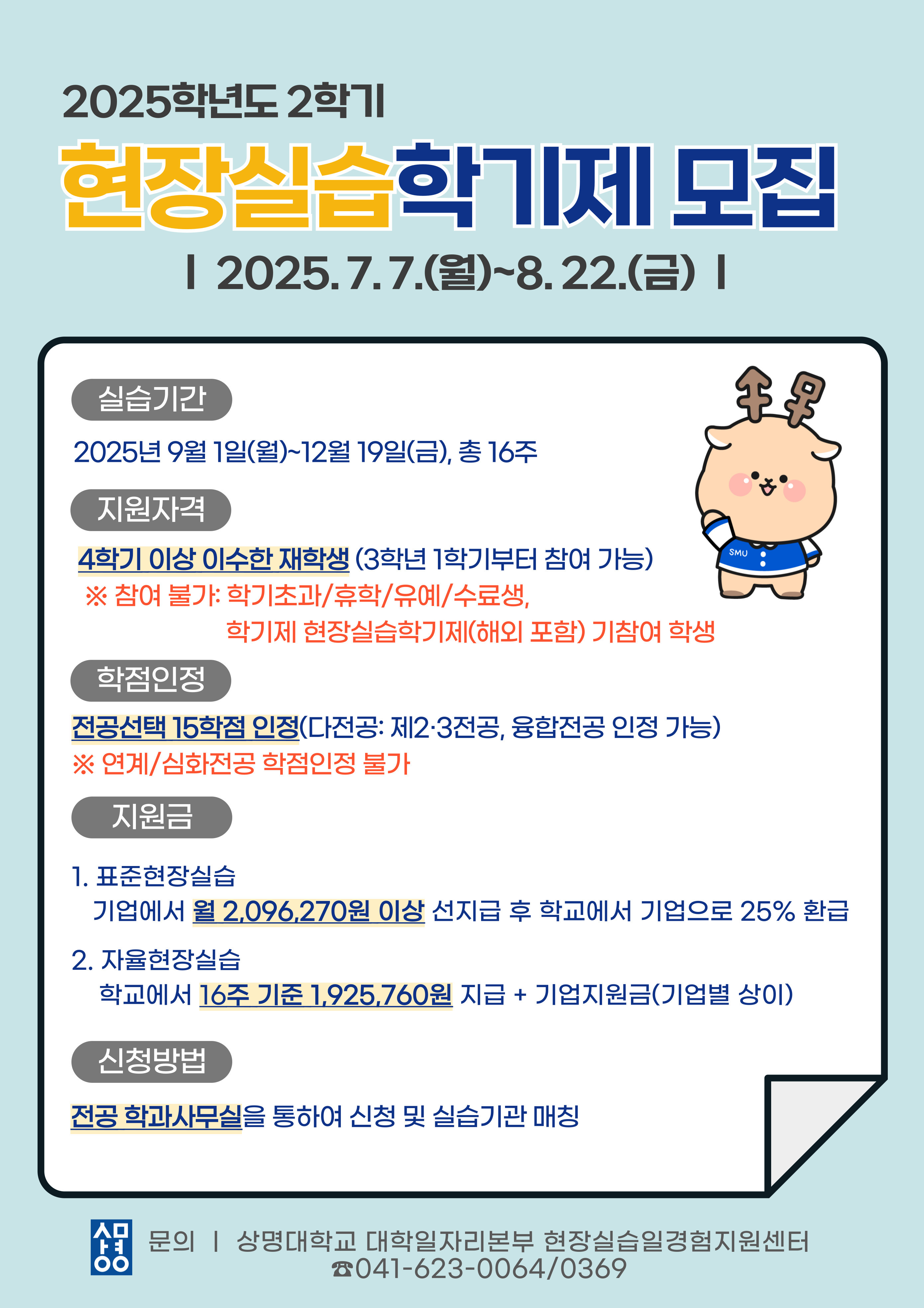 천안 [진로취업] [현장실습·일경험지원팀] 2025학년도 2학기 현장실습학기제 시행 공고 -